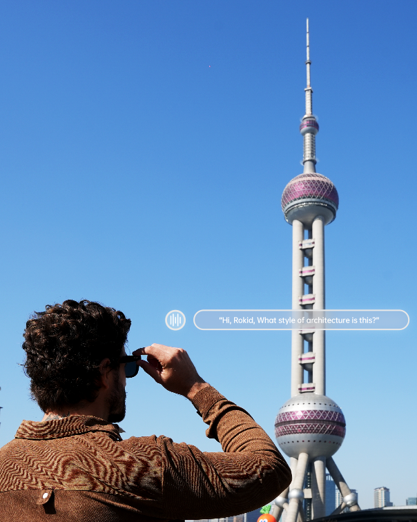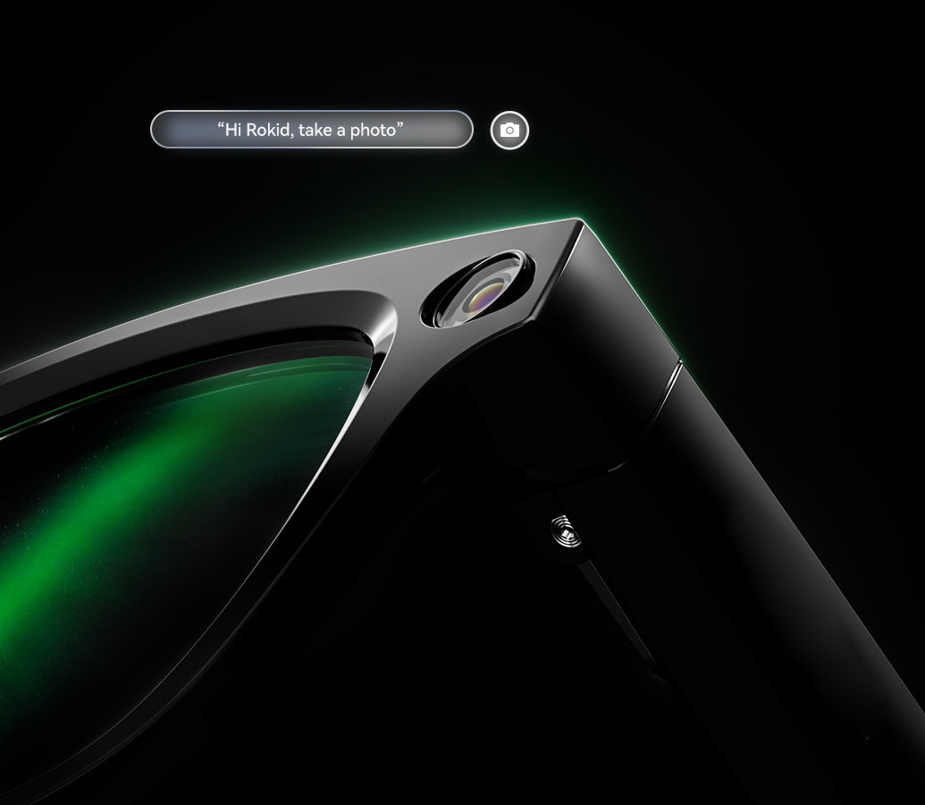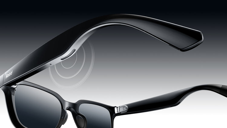 Directional AAC speakers tuned by Rokid keep your audio clear to you and low to everyone else—perfect for music, calls, and quiet AI replies.