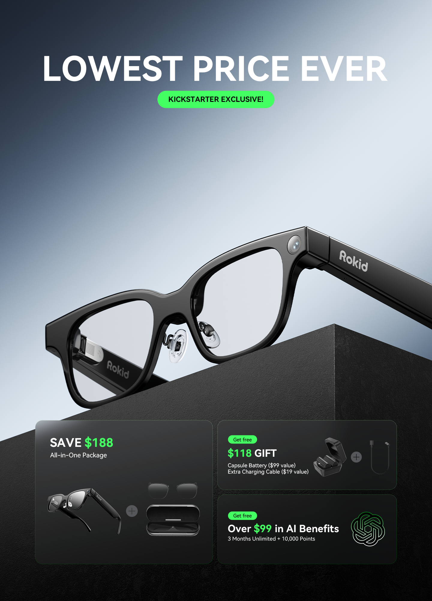Rokid Glasses support all-day use with just one charge under moderate usage. They also feature fast charging and allow you to use the device while charging, effectively eliminating battery life concerns.